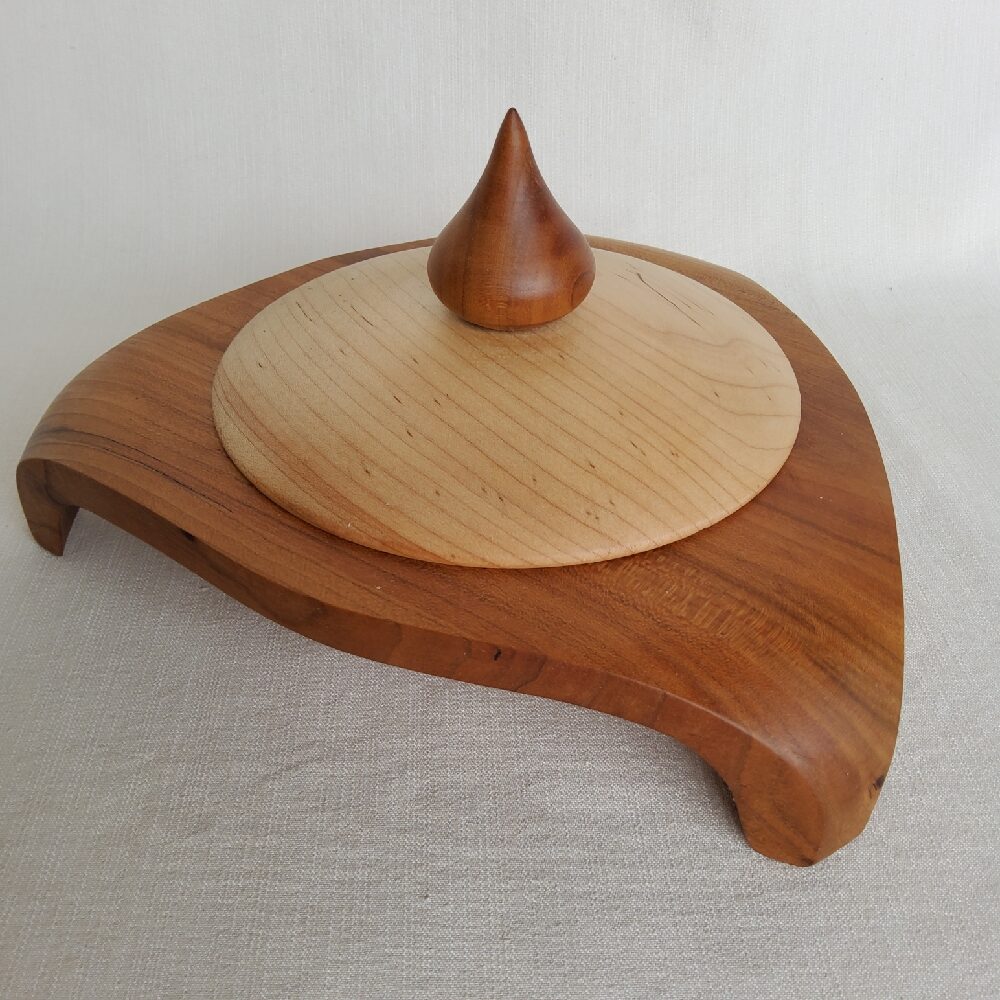 Hand turned wood bowl by Dan Gingerich. $150. Cherry with maple lid. 22 x 11 cm.